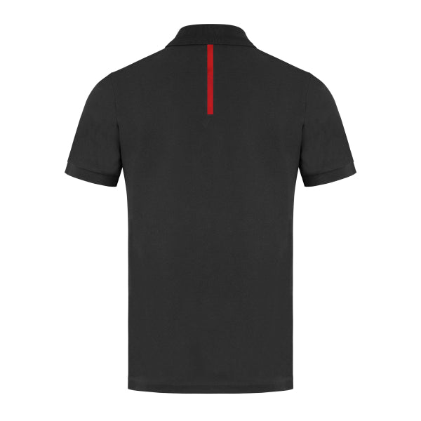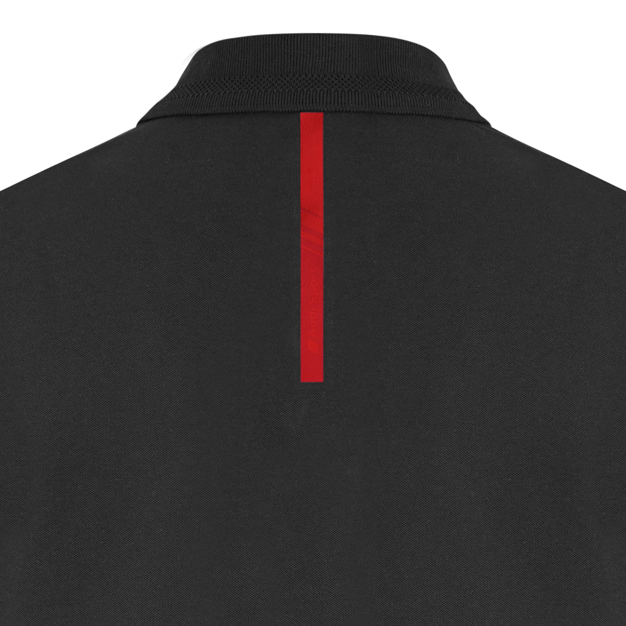 Details: - New Audi Sport short-sleeved polo shirt - Rib collar with knitted stripes (tonal), cuffs on the arm - Contrasting stripes in red with the Audi Sport logo next to the button panel - Vertical contrast stripe in red with the Audi Sport Logo on the upper back - Small hem slit in the side seam, front part slightly shortened to the back part - Audi rings on the inside of the neck label and Audi Sport logo on the contrasting stripe next to the button panel